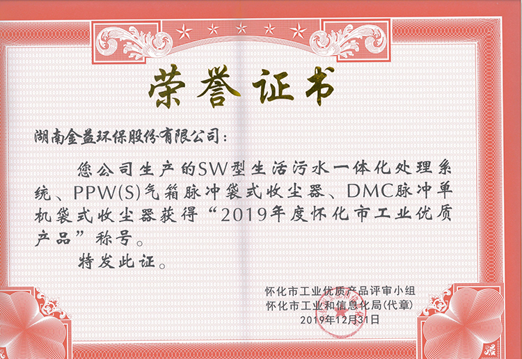 懷化市工業優質產品證書